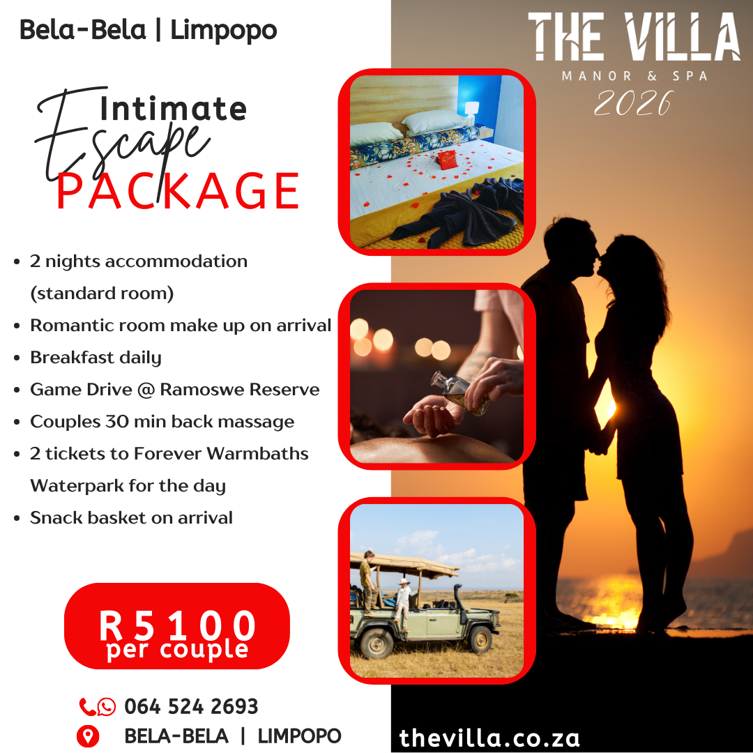 Embark on a romantic journey like no other with our exclusive Couples Retreat Package, a harmonious blend of adventure, relaxation, and intimate moments. Begin your retreat with an exhilarating game drive through breathtaking landscapes, where the beauty of nature sets the stage for a memorable escape. After a day of exploration, indulge in spa treatments designed to rejuvenate your senses, followed by a romantic room turndown that transforms your accommodation into a private oasis of love. Relish in the enchantment of a personalized picnic basket, creating a picturesque moment for you and your partner. As the sun sets, capture the magic with a professional photo shoot, immortalizing the love and connection you share. This retreat is a curated experience, inviting you to savor every moment of togetherness and create lasting memories in a haven of romance.